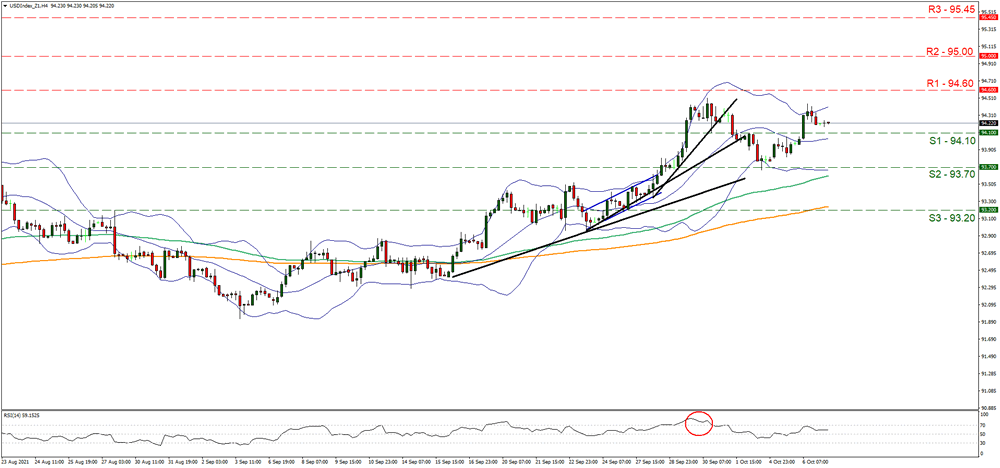 The USD gained against most of its counterparts yesterday according to the Dollar index, while retained a 14-month high against the EUR. The greenback was supported as worries for inflationary pressures remain high, while at the same time the frequent comments made by Fed’s policymakers about the issue and a tapering of the bank’s QE program tend to reinforce such expectations. It’s characteristic that the US bond yields remained at rather high levels also providing further support for the USD. Also yesterday, US stock markets seemed to be on the rise as worries about the US debt ceiling issue seemed to ease. On the other hand, gold prices showed little volatility yesterday. The market’s attention increasingly turns towards the release of the US employment report for September and it should be noted that the ADP employment figure released yesterday, rose more than expected, implying a tightening of the US employment market. Today we note the release of the weekly initial jobless claims figure while Cleveland Fed President Mester is scheduled to speak.