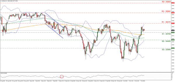 The USD remained rather stable against its counterparts yesterday, yet started with some gains during today’s Asian session as the market’s focus is fixed on the release of the US employment report for September. The forecasts in general are for all main indicators in the report to align, pointing towards a tightening of the US employment market. Should the actual rates and figures meet their respective forecasts, they could boost the Fed’s confidence and enhance the possibility of announcing the tapering of the bank’s QE program in its November meeting. On USD fundamentals related to the debt ceiling of the US may have found a solution as US lawmakers seem to agree to raise the federal borrowing limit until December, creating substantial support for the US stockmarkets. On the monetary front it should be noted that Cleveland Fed President Mester yesterday was reported stating that inflation has surpassed the level required for a rate hike yet worries for the employment market persist.