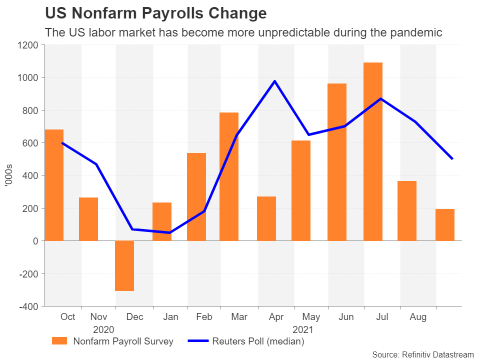 This should make it easier for the Fed to overlook the weakness in the headline NFP figure and go ahead with tapering at the next meeting on November 2-3, especially as inflation worries are mounting. The consumer price index rose at the fastest pace in 13 years during the summer months and is expected to have stayed above 5% in September.