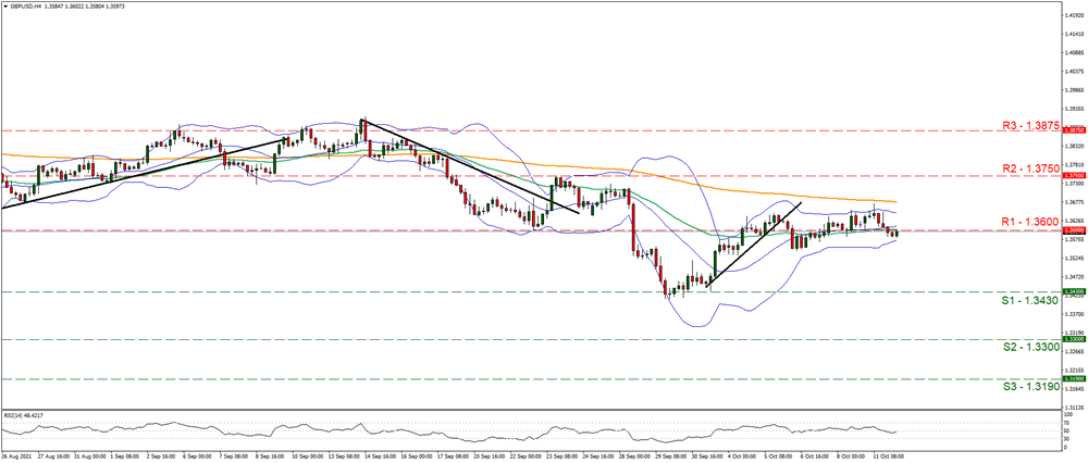 GBP/USD maintained a sideways motion, with its price action revolving around the 1.3600 (R1) level. Currently we tend to maintain a bias for the rangebound movement to be continued. Please note that the RSI indicator below our 4-hour chart runs along the reading of 50, implying a rather indecisive market. Should the pair’s price action start to decline we may see it aiming if not breaching the 1.3430 (S1) support line which reversed the pair’s downward movement on the 29th of September. On the other hand should buyers be in control of the cable’s direction, we may see it breaking clearly the 1.3600 (R1) level and aim if not breach the 1.3750 (R1) resistance line which capped the pair upward movement on the 23rd of September.