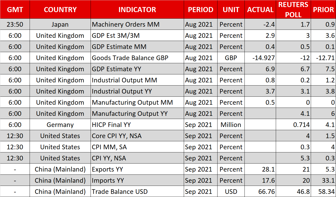Finally, China’s latest inflation data early on Thursday will reveal whether factory prices continued to surge amid the power shortages, enabling even more inflation to be exported abroad soon.