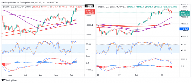 It has run into some resistance on approach to $60,000, a notable psychological resistance level and one that falls just ahead of the all-time high. So it’s not surprising that we’re seeing some resistance around these levels.