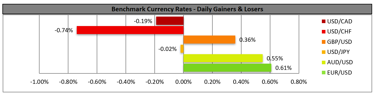 The common currency got a lift against the USD,GBP and JPY yesterday and is about to end the week in the greens as buying traction was created by ECB’s interest rate decision. The bank remained on hold keeping the refinancing rate at 0.0% and the deposit rate at -0.50% as was widely expected and kept its QE program and PEPP target also unchanged. The bank reiterated its view about the transitory nature of the current inflationary pressures which are to accelerate even further, and ECB President made no effort to conceal the bank’s worries about the issue. On a fundamental level, we maintain our worries for the energy crunch of Europe as well as the supply shortages, especially about semiconductor chips despite some positive signals coming from the ECB, which could slow down the economic recovery of the area. Also it should be noted that Germany’s preliminary HICP Rate for October accelerated slightly more than expected increasing the bullish sentiment for EUR while today we highlight the preliminary HICP rates for France and the Eurozone as well as the preliminary GDP rates for Q3 for Germany, France and the Eurozone as a whole.