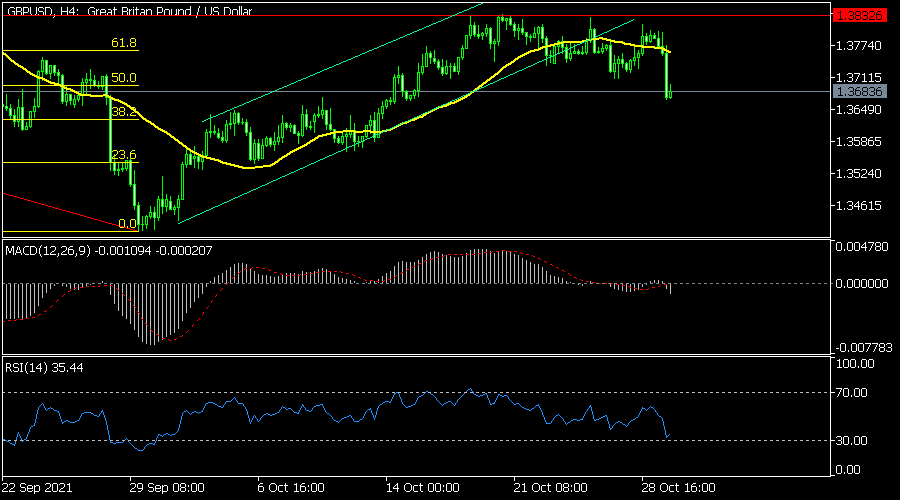 The GBPUSD pair declined sharply because of the stronger US dollar. The pair declined to a low of 1.3680, which was the lowest level in 2 weeks. The pair moved below the lower side of the ascending channel shown in green. It has also moved below the short and longer-term moving averages and the 50% Fibonacci retracement level. Therefore, after this bullish breakout, the path of the least resistance is lower ahead of the BOE and Fed decisions.