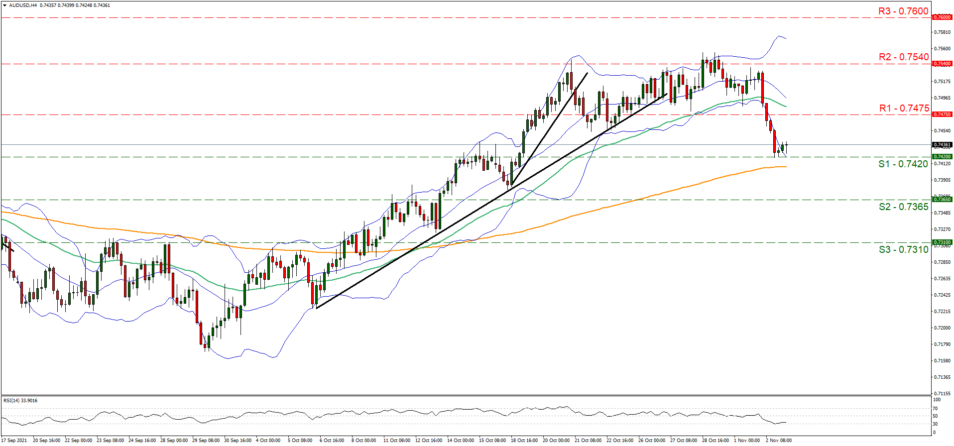 AUD remained soft yesterday against the USD as RBA’s dovishness as displayed in yesterday’s monetary policy decision seemed to continue to weigh on the Australian currency. Fundamentally the tensions in the French-Australian relationships made headlines, yet that seemed not to worry the markets. It should be noted that Aussie traders during tomorrow’s Asian session are to have a busy day as we note the release of September’s trade data as well as the retail trade growth rate for Q3. On the other hand, the Kiwi got some support against the USD during today’s Asian session as Q3’s employment data were quite solid with the unemployment rate dropping beyond expectations and job growth rate accelerating instead of slowing down. It should be noted that RBNZ Governor Adrian Orr is reported to have stated earlier today that global inflationary pressures could lead to higher interest rates, which could underscore the bank’s hawkish profile and support NZD.