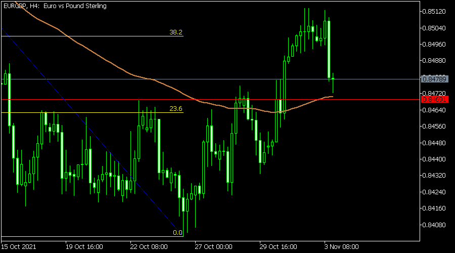 The British pound held steady in the overnight session as investors waited for the upcoming Bank of England (BOE) interest rate decision. Economists expect that the BOE will announce the start of tapering of its asset purchases. Besides, while the country is going through challenges, it is still doing well. For example, data published on Wednesday showed that the house price index (HPI) and the services PMI rose in October. The BOE is also expected to leave its interest rate intact. Analysts will also watch the number of BOE members who will vote to hike rates.