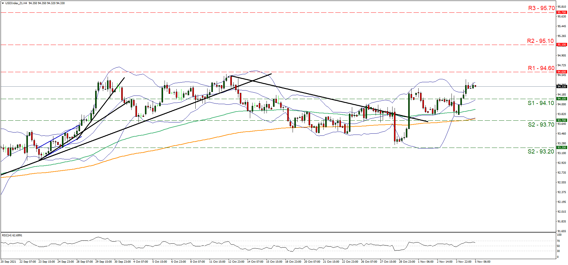The USD index was on the rise yesterday breaking the 94.10 (S1) resistance line, now turned to support. Given that the index has started to mark higher highs and higher lows we see the bullish tendencies, yet we note that today’s employment report release could alter the index’s direction. Should USD buyers continue to dominate the scene we may see the index rising, breaking the 94.60 (R1) resistance line and take aim for the 95.10 (R2) level. Should the market decide to sell the greenback we may see the index dropping once again below the 94.10 (S1) support line and take aim for the 93.70 (S2) level.
