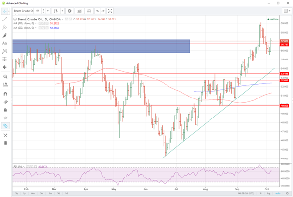 Brent crude is slightly lower at 57.10 in Asia, and the overnight high at 57.40 is the initial resistance followed by 57.60. On the downside, Brent has held the lower end of the longer term breakout zone at 55.50 in a pleasing technical development. Support then appears below there at 54.90.