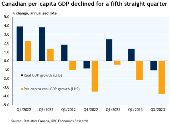 Output in the manufacturing sector fell almost 5% (annualized in Q3), and the retail and hospitality sectors also pulled back alongside soft consumer spending.