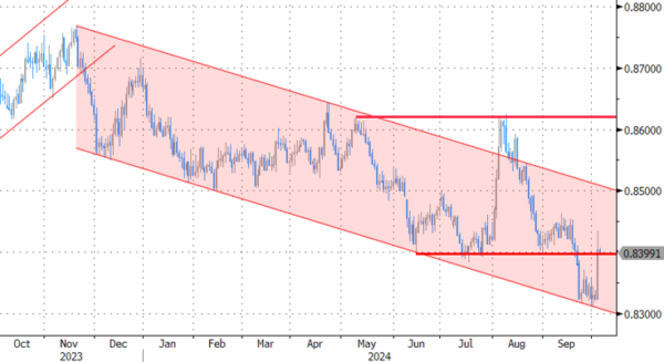 The BoE delivered a hawkish cut in August. Policy restrictiveness was indicated to be further unwound gradually on a pace determined by a broad range of data. The economic picture between the UK and Europe also was increasingly diverging to the benefit of sterling, pulling EUR/GBP below 0.84 support. Dovish comments by BoE Bailey ended by default GBP-strength.