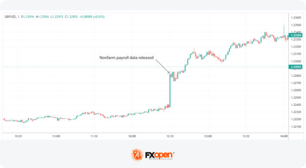 On the day the NFP data is released, specific execution tactics tailored to the NFP’s unique market footprint can add substantial value. Due to the potential for rapid price movements, traders narrow their focus to liquid markets, like EUR/USD, USD/JPY, and GBP/USD, to facilitate quick entries and exits. They’ll typically trade on the 1m, 2m, 5m, or 15m charts and often require platforms built with speed in mind, like FXOpen’s advanced TickTrader platform.
