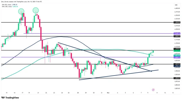 Gold (XAU/USD) Four-Hour Chart, November 10, 2025