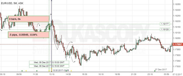 The Greenback fell modestly against the Euro on the ADP report revealing some weakening in the employment change in November. The EUR/USD lost 5 base points to return ito 1.1810 area and declined further to be seen trading below the 1.1800 area, as the next release was not strong enough to bring the pair back to stronger levels.