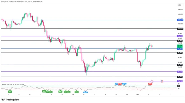 Bitcoin (BTC/USD) Four-Hour Chart, December 3, 2025