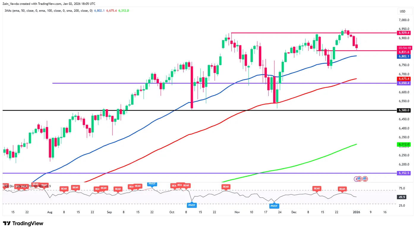 S&P 500 Daily Chart, January 2, 2026