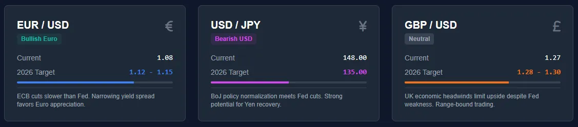 A Year of Two Halves Most experts predict that 2026 will play out in two distinct phases. In the first half of the year, the economy is expected to look weak, which will likely force the Fed to cut interest rates earlier than planned (possibly in January and April) to protect jobs. This would temporarily push the value of the dollar down.