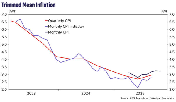 The TM measure was reported to have increased 3.2% in the year to November, a slight moderation from the 3.3%yr pace in October. Due to its short history, the annual pace of monthly TM inflation can only be calculated back to April 2025. Before then the ABS noted that annual movements are calculated by comparing each quarter to the same quarter in the previous year.