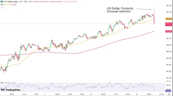 DXY 15 min Chart – January 9, 2026. Source: TradingView