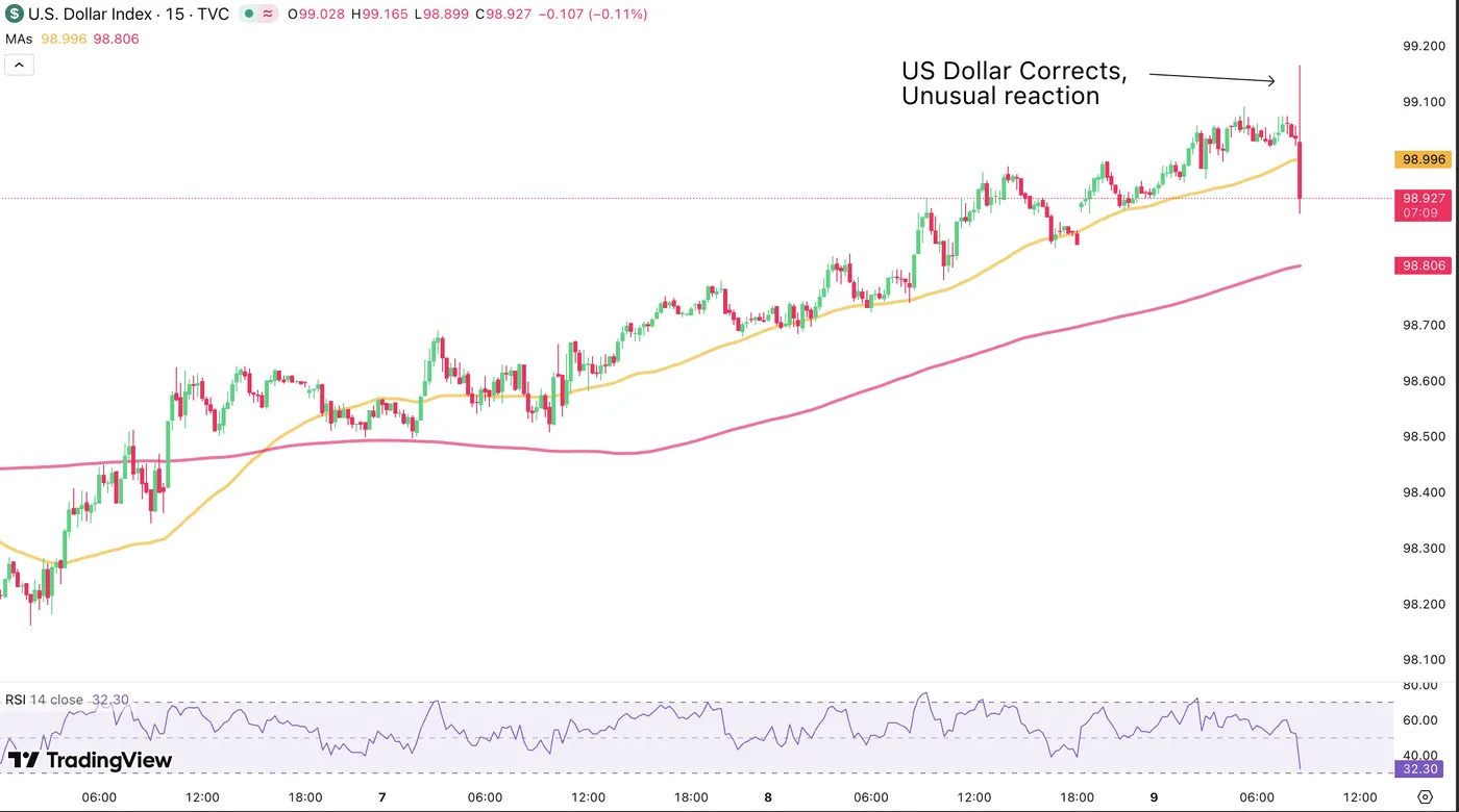 DXY 15 min Chart – January 9, 2026. Source: TradingView