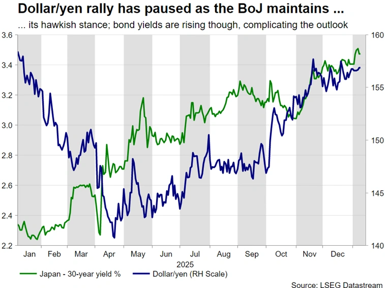 Meanwhile, after a relatively quiet period, Fedspeak is expected to intensify. The next Fed meeting is just 20 days away, which means that Fed members have to put their arguments across ahead of the usual blackout period. The focus will be on the more hawkish voting members, like Cleveland’s Hammack and Dallas’ Logan. Interestingly, the doves clearly have the upper hand this year in terms of the votes, adding to expectations for a persistently dovish Fed stance in 2026.