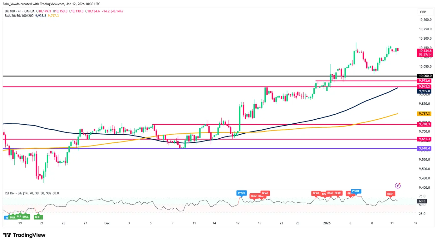 FTSE 100 Index Four-Hour Chart, January 12, 2026