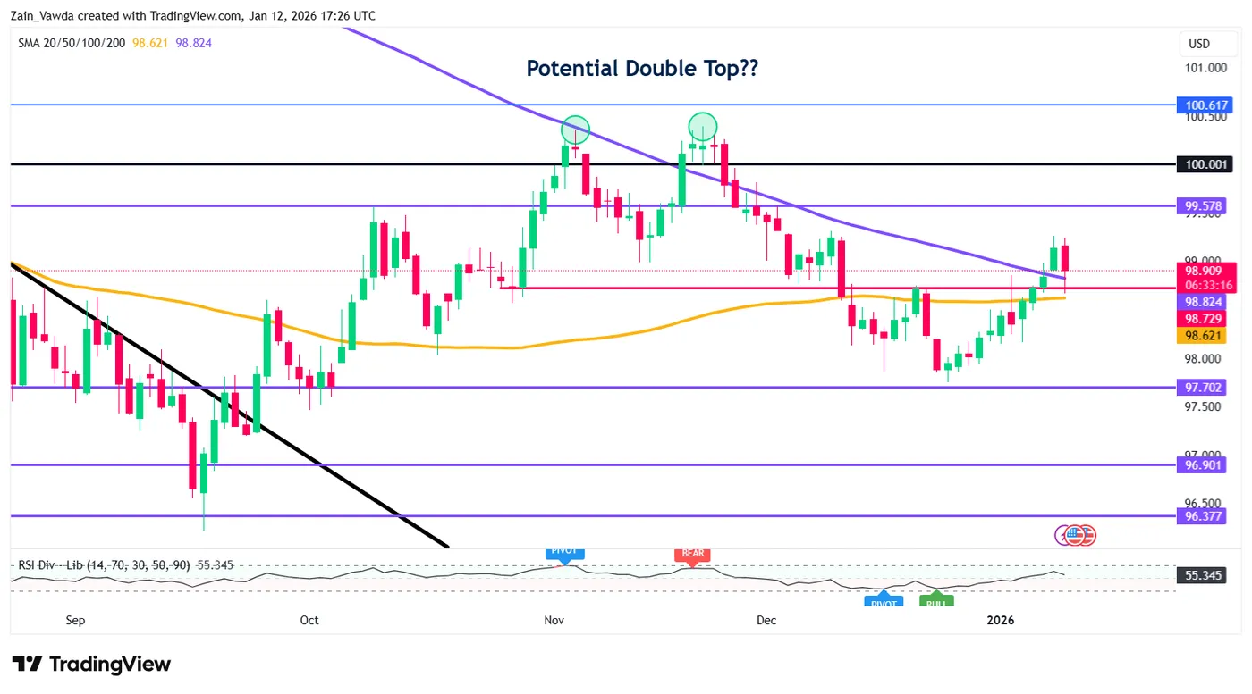 US Dollar Index Daily Chart, January 12, 2026
