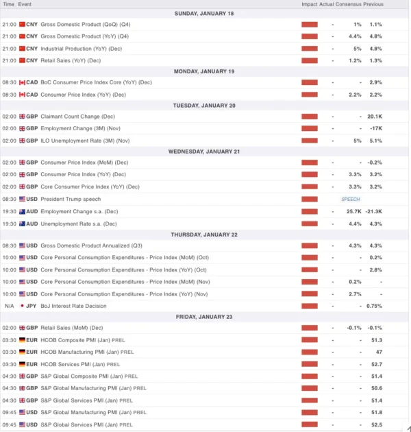 The Fed also enters its pre-FOMC Blackout Period (The meeting is on January 28, no rate cuts expected).