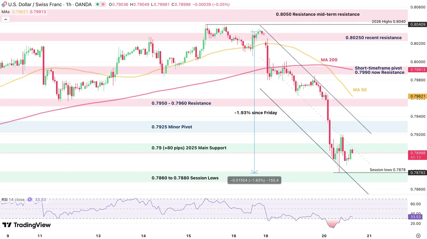 USD/CHF 2H Chart – January 20, 2026 – Source: TradingView