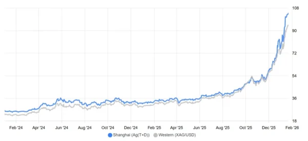 The growing gap between silver prices in the US and in Shanghai highlights the contrast between a financially driven paper market and a physically driven commodity market. The unusually large premium in China indicates that real, deliverable silver is currently more valuable there than futures-based pricing in the West suggests. While this does not guarantee an immediate global repricing, it is a signal that the physical side of the silver market is under pressure and one that global investors would be wise to watch closely.