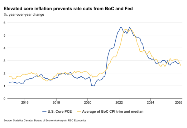 At December’s meeting, Governor Macklem reiterated the BoC’s holding bias, contingent on moderate growth and stabilizing inflation. Data since then have largely aligned with those expectations. December labour market conditions improved moderately from a quarter ago, and while core inflation decelerated in December, it remains above the 2% target.