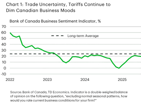 • The Bank of Canada’s business and consumer sentiment surveys continued to point to subdued moods amid economic uncertainty.