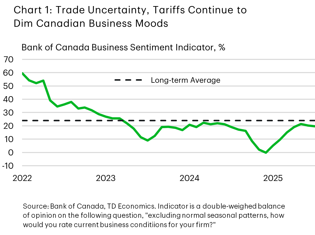 • The Bank of Canada’s business and consumer sentiment surveys continued to point to subdued moods amid economic uncertainty.
