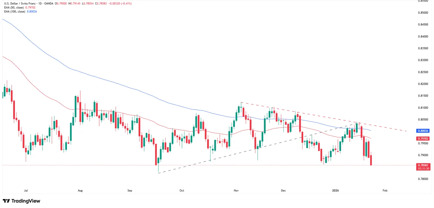 Daily timeframe of USDCHF, source: TradingView