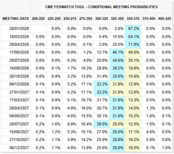 Fed Watchtool Conditional Meeting Probabilities, source: cmegroup.com