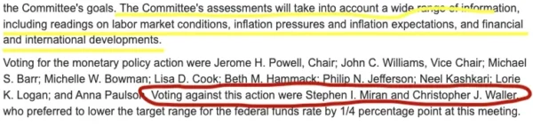 The votes for the pause are at 10-2 – Fed’s Waller and Miran dissented.