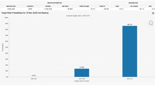 Market Pricing for the March meeting (14:20) – Source: FedWatch Tool