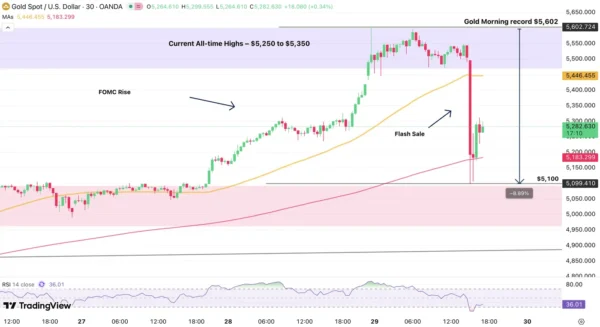 Gold (CFD) 30m Chart – January 29, 2026 – Source: TradingView
