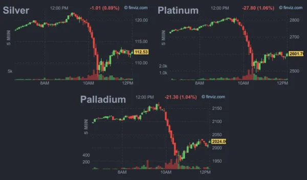 Morning Session moves in Metal Futures – Courtesy of Finviz