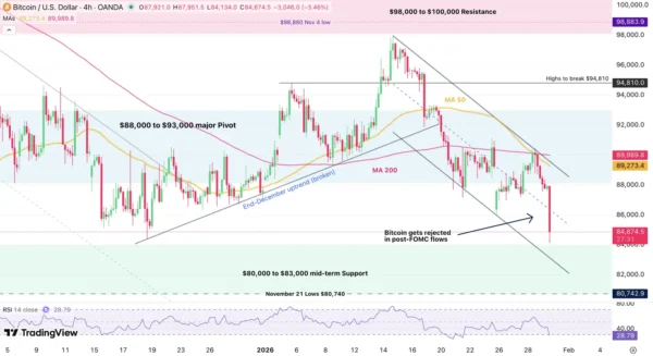 Bitcoin 4H Chart – January 29, 2026 – Source: Tradingview