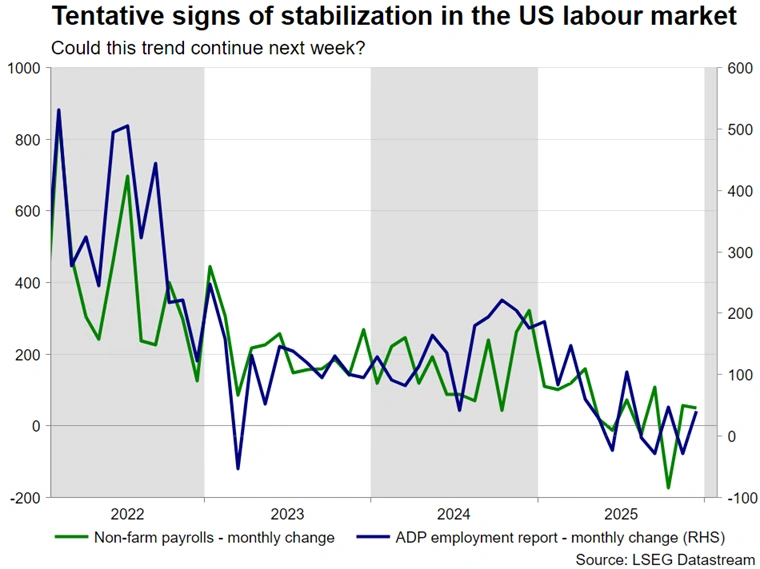 A strong set of US data, confirming current indications for a stabilizing labour market, along with another small pullback in inflationary pressures, could offer some significant respite to the dollar. However, hawkish Fedspeak is critical for the durability of such a move. Despite the upbeat Fed meeting, and the fact that Miran voted for a 25bps cut this time, hawkish Fedspeak is not the baseline scenario at this stage.