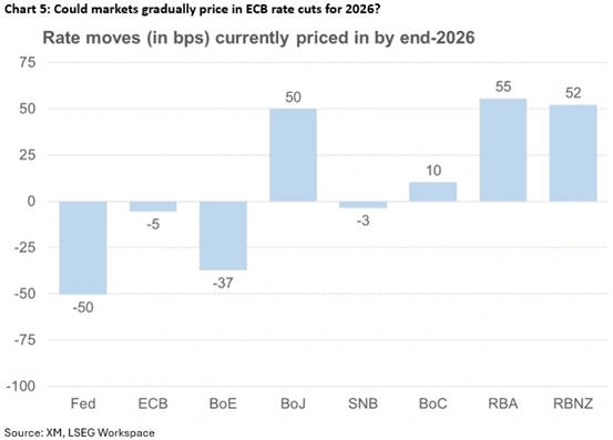 Despite Trump’s shenanigans, the US economy is progressing well, with the Fed keeping rates constant, as widely expected. Notably, Chair Powell commented after the FOMC meeting that “the outlook for economic activity has clearly improved since the last meeting”, and “upside risks to inflation and downside risks to employment have diminished”. That said, as noted by Powell, there are some tentative signs of consumer spending fatigue, keeping expectations for two rate cuts in 2026 alive.