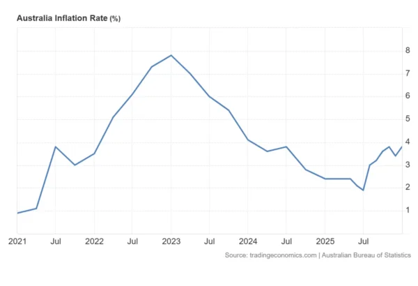 The latest inflation data from Australia has once again raised concerns among monetary policymakers and investors. Core inflation (the trimmed mean) — regarded by the Reserve Bank of Australia (RBA) as the key measure of underlying price pressure — rose in the fourth quarter to 3.4% year on year. This reading not only exceeded market expectations (3.3%), but also moved above the upper bound of the RBA’s inflation target range (2–3%).