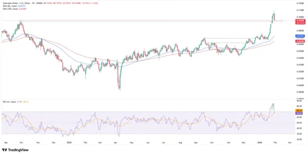 Market reaction has been swift. OIS contracts now price in around a 76% probability of a rate hike at the 2–3 February meeting. Such a move would represent a sharp pivot in monetary policy — less than six months after the last rate cut. At the same time, three-year government bond yields fell to 4.28%, possibly indicating that some investors view the recent rise in inflation as temporary or expect only a one-off tightening move by the RBA.