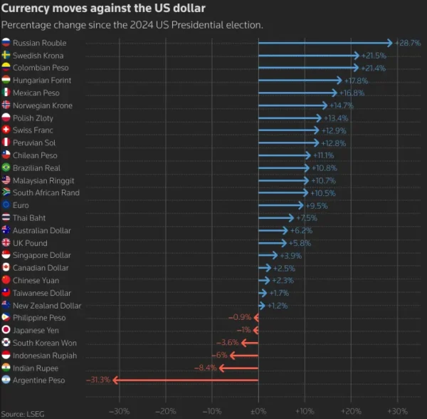The US dollar is facing several other problems. Conflicts around the world (geopolitics), concerns about how much money the US government is spending (fiscal risks), and the possibility that different countries might work together to lower the dollar’s value (FX intervention) have all been weighing on the Dollar.