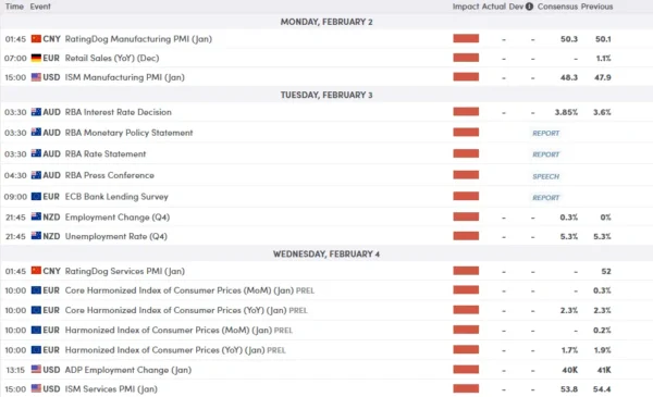 Closer to home, the Reserve Bank of Australia (RBA) meets on Tuesday, Feb 3.