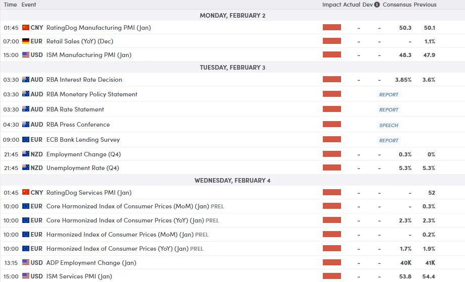 • Central Banks (RBA, BoE, ECB) meet ahead of the January NFP report.