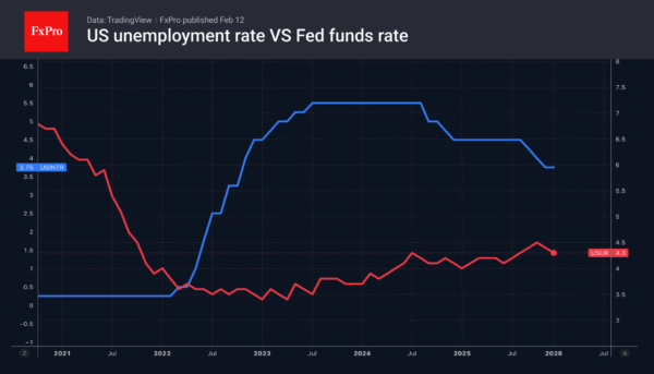 The yen is supported by confidence in the stabilisation of the financial system under Sanae Takaichi. This will accelerate the process of repatriating capital to Japan by residents of the country. Non-residents are attracted by the best start to the year for Asian indices this century. On the other hand, the spread between the Fed and BoJ rates remains wide, which helps USDJPY buyers.