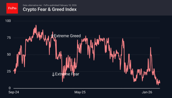 By and large, the cryptocurrency sentiment index says the same thing, falling to 8 at the start of the day on Wednesday. The indicator has been in single digits for nine of the last fourteen days. This is worse than the darkest moments of 2020 and 2022. It seems that as the cryptocurrency market matures, it is becoming less optimistic. On the other hand, it is also becoming less volatile.