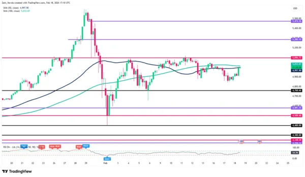 Gold (XAU/USD) Four-Hour Chart, February 18, 2026