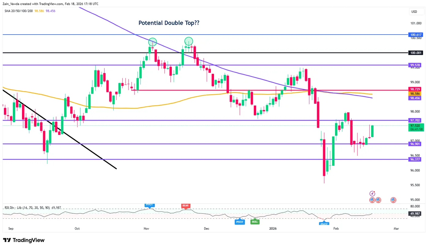 US Dollar Index (DXY) Daily Chart, February 18, 2026